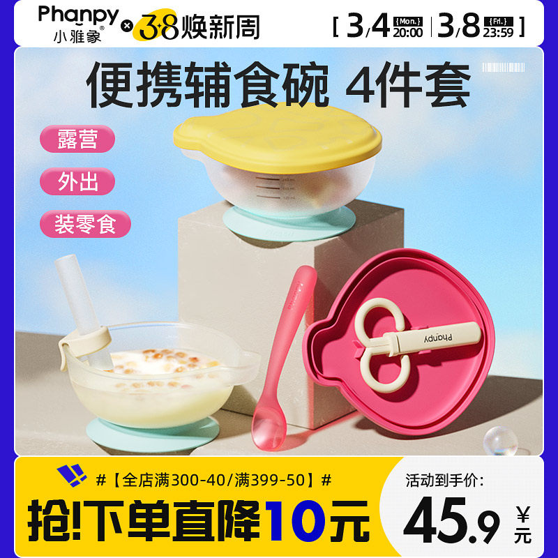 小雅象宝宝外出辅食碗勺套装便携婴儿专用吸盘儿童喝汤吃饭餐具
