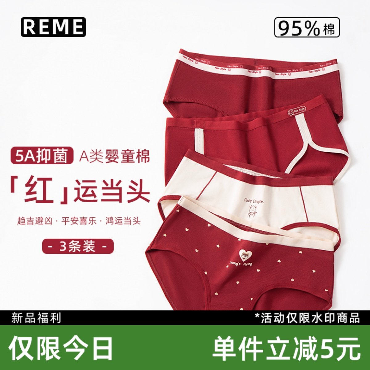 【红运当头】红色内裤女2023新款女士内裤女生纯棉全棉少女短裤