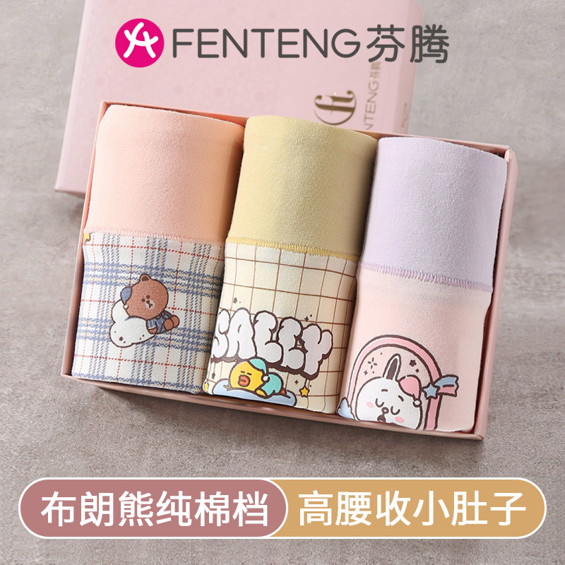 芬腾高腰收腹内裤女纯棉全棉女生可爱卡通夏季薄款大码三角裤短裤