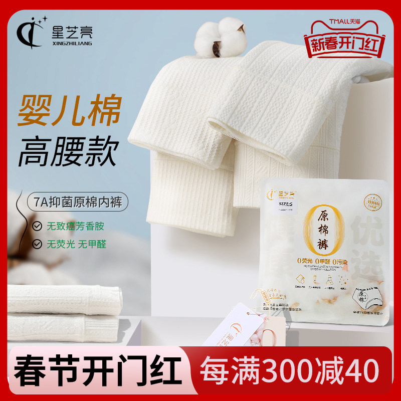 星芝亮7A原棉内裤女士高腰100%全棉抗菌档女生纯棉透气收腹短裤女