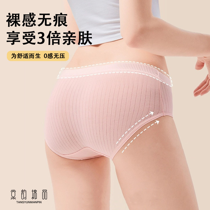 女士内裤女无痕性感新款女生纯棉抗菌100%全棉裆中腰大码三角短裤