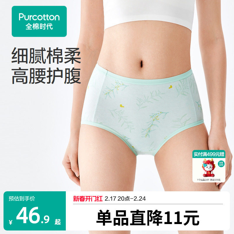 全棉时代女士内裤高腰三角女生纯棉内裤女舒适透气包臀简约内裤