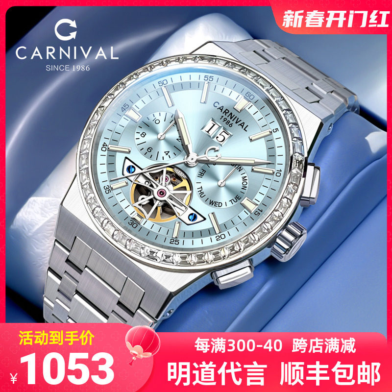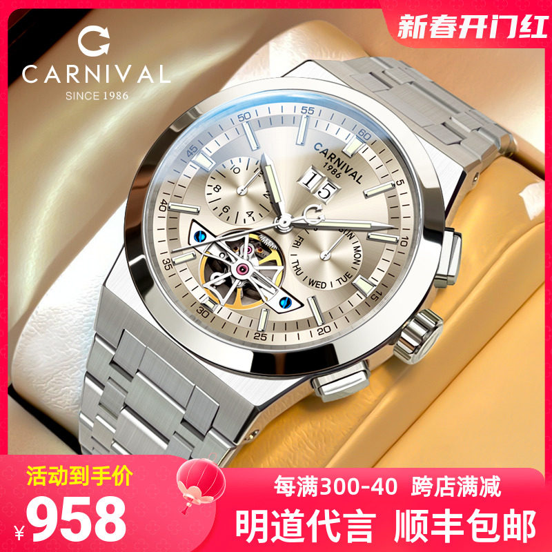 正品嘉年华男士手表镂空机械表全自动多功能夜光防水品牌新款男表