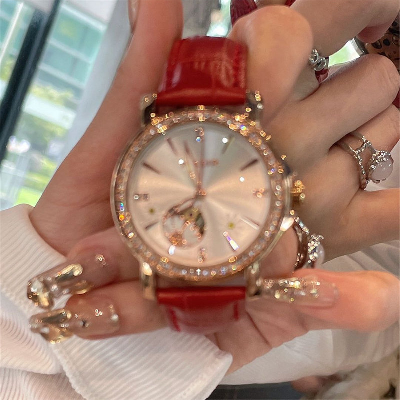 红色表山茶花手表女网红爆款全自动纯机械表女士女款大牌机械女表