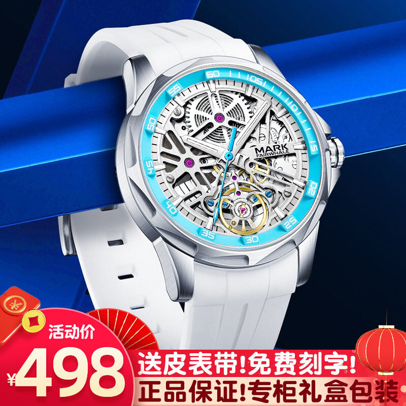 马克华菲手表男全自动机械表时尚镂空硅胶男表夜光防水国潮流腕表