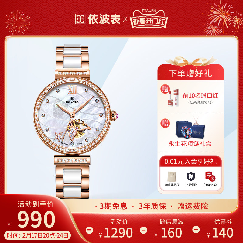 依波手表女夏季轻奢小众女表正品全自动机械表美人鱼3629