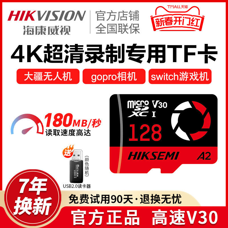 海康威视128G内存卡无人机大疆gopro相机switch高速TF卡SD存储卡