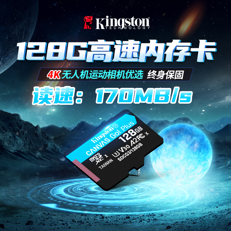 金士顿官方旗舰128g/256g高速无人机tf内存卡大疆gopro行车记录仪