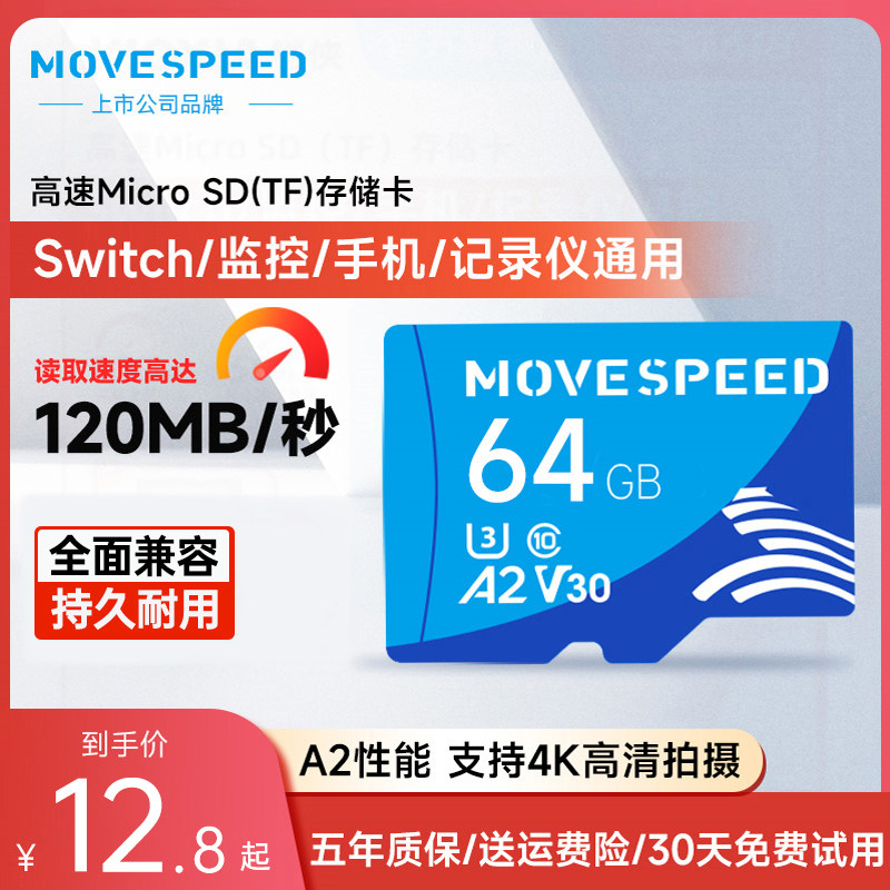 移速64g高速TF内存卡128gb手机监控摄像头行车记录仪专用存储sd卡