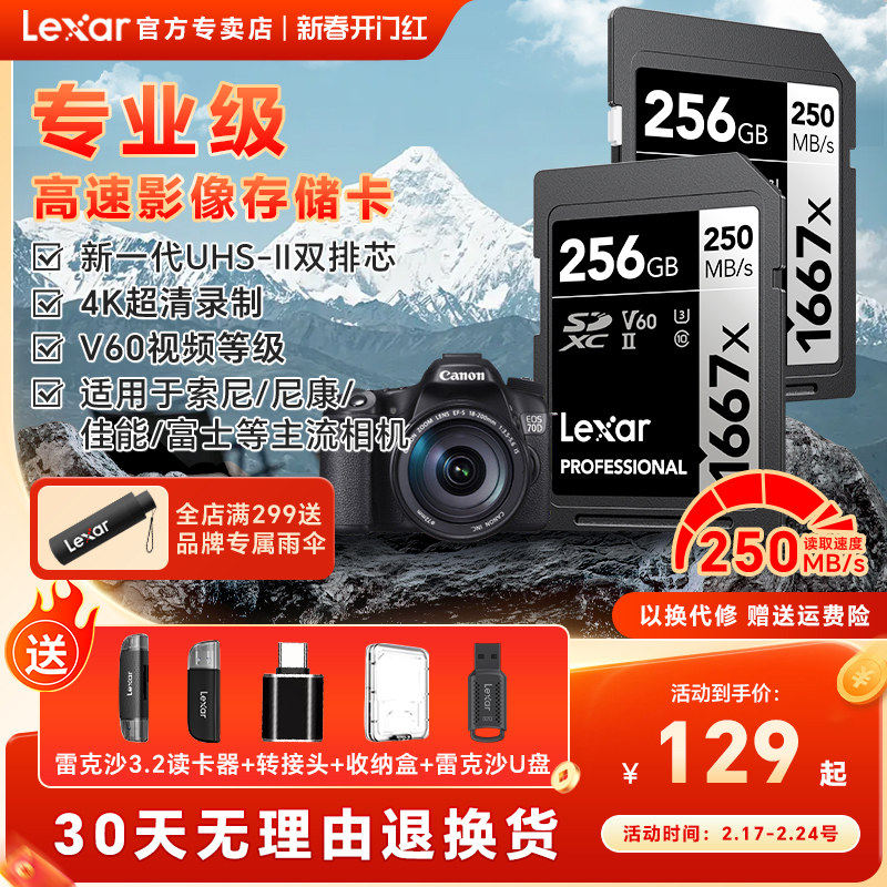 雷克沙SD卡256G高速V60存储卡4K高清尼康佳能索尼相机专用内存卡