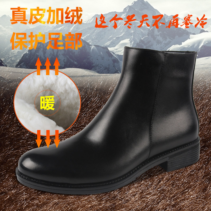 际华正装棉皮鞋冬季真皮高帮羊毛靴男士商务休闲棉皮鞋加绒马丁靴