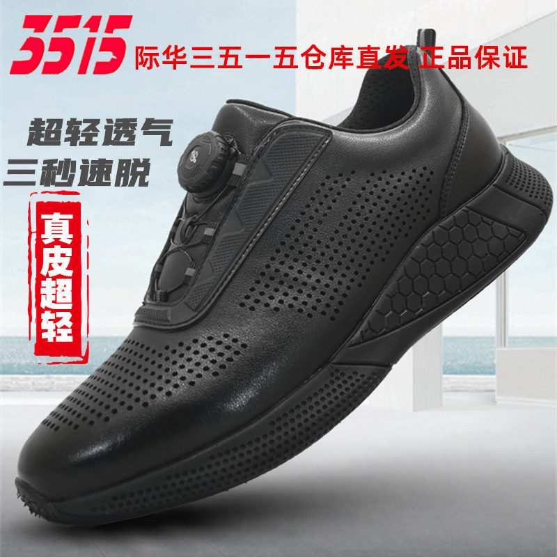 3515强人正品男鞋夏季镂空凉鞋自动扣快速高尔夫真皮商务休闲皮鞋