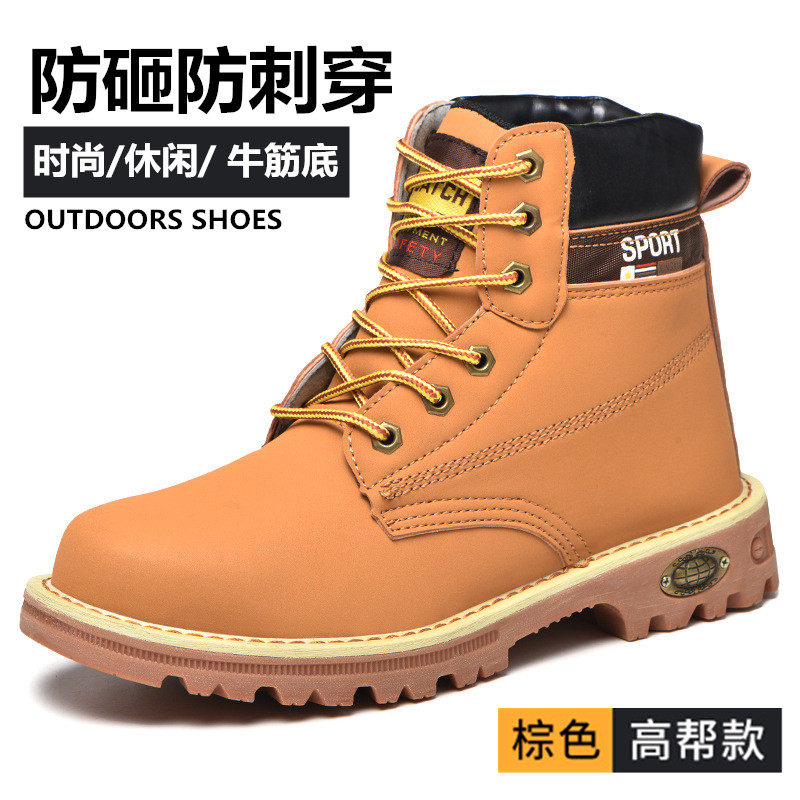 高帮劳保鞋男士马丁靴牛筋底工装大黄靴军靴防砸防穿刺电焊工作鞋