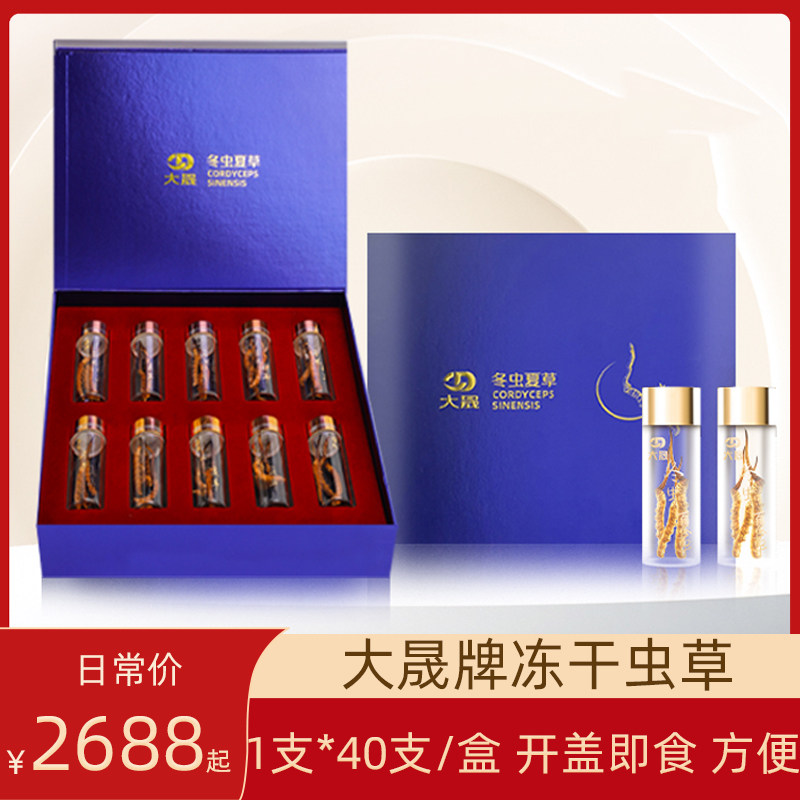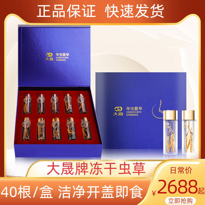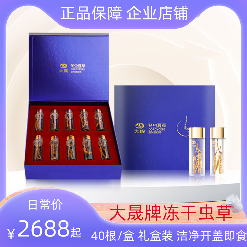 大晟牌冬虫夏草40根/盒正品礼盒装即食冻干虫草洁净送父母健康礼