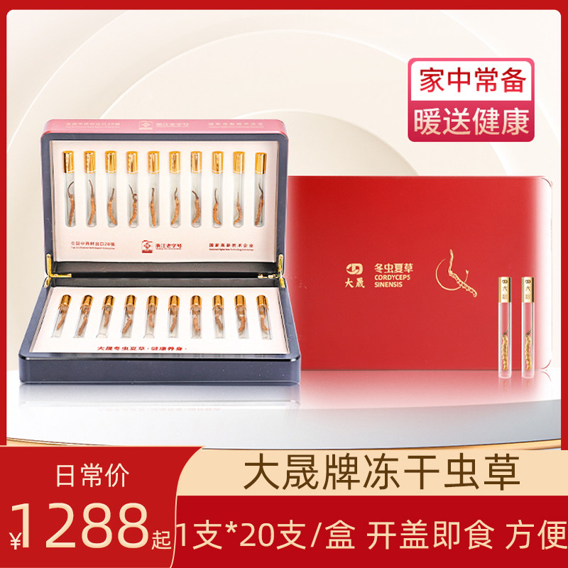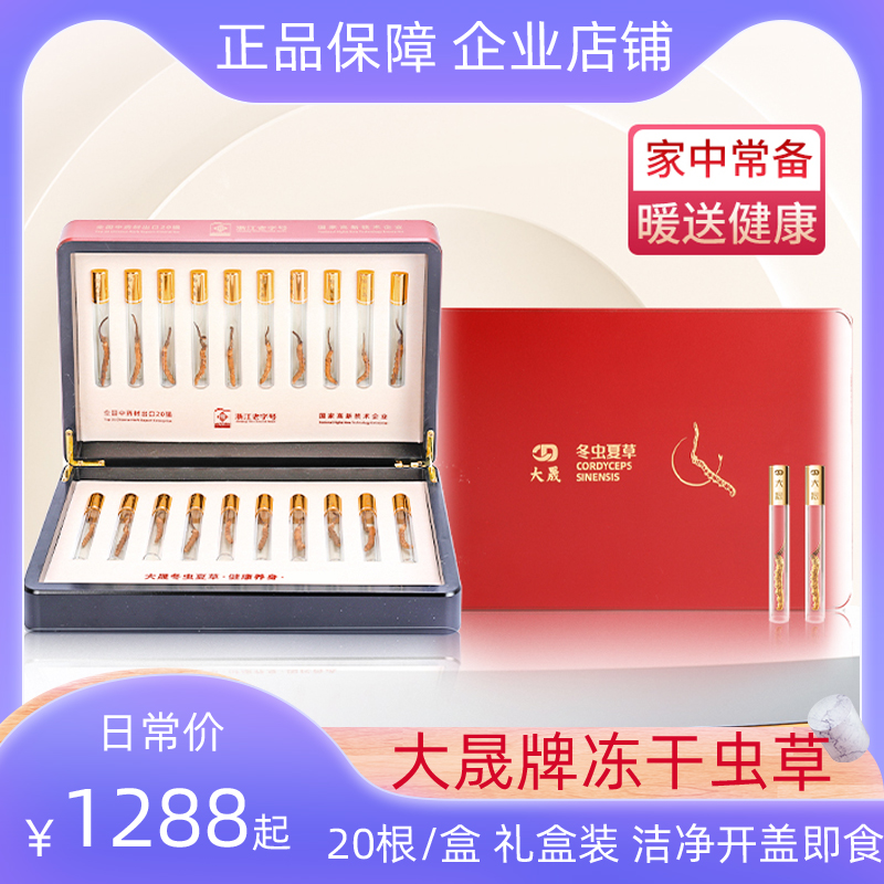 大晟牌冬虫夏草20根/盒正品冻干虫草洁净即食礼盒装送父母健康礼