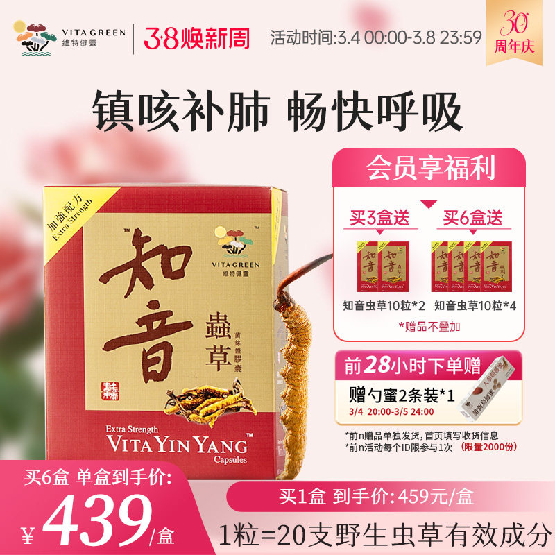 维特健灵知音虫草肺清胶囊营养品冬虫草调节免疫补品官方正品3盒