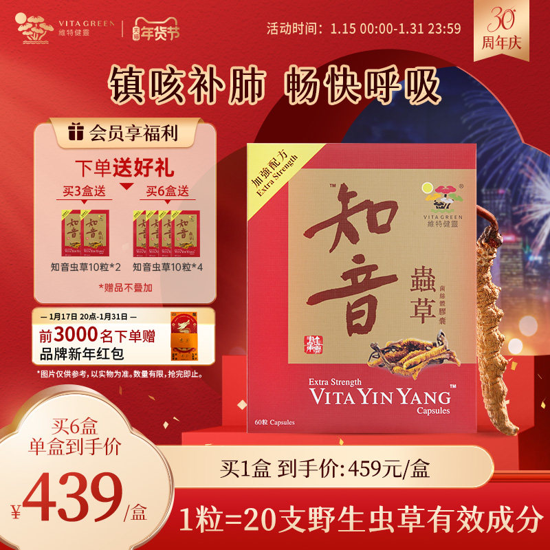 维特健灵知音虫草肺清胶囊营养品冬虫草调节身体补品官方正品60粒