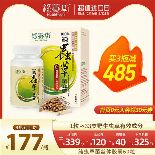 绿养坊纯虫草菌丝体胶囊免疫力调节冬虫夏草营养滋补官方正品60粒