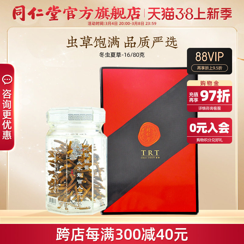 北京同仁堂西藏那曲冬虫夏草礼盒官方旗舰店官网16/80g