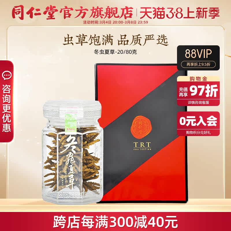 北京同仁堂旗舰店官网冬虫夏草20/80g西藏虫草冬虫礼盒