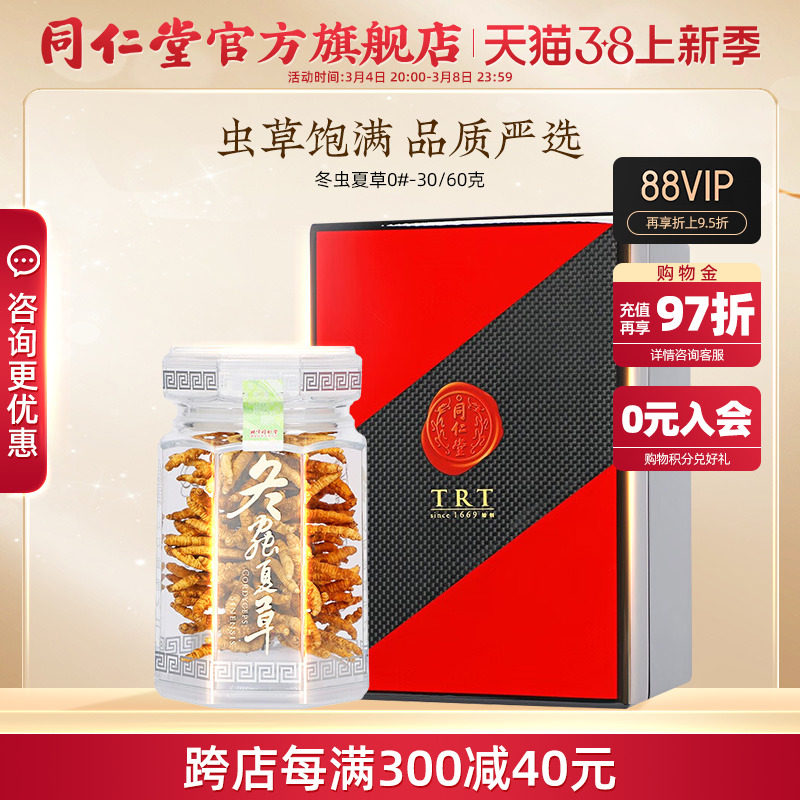 北京同仁堂西藏那曲冬虫夏草0#-30/60克官方旗舰店正品礼盒