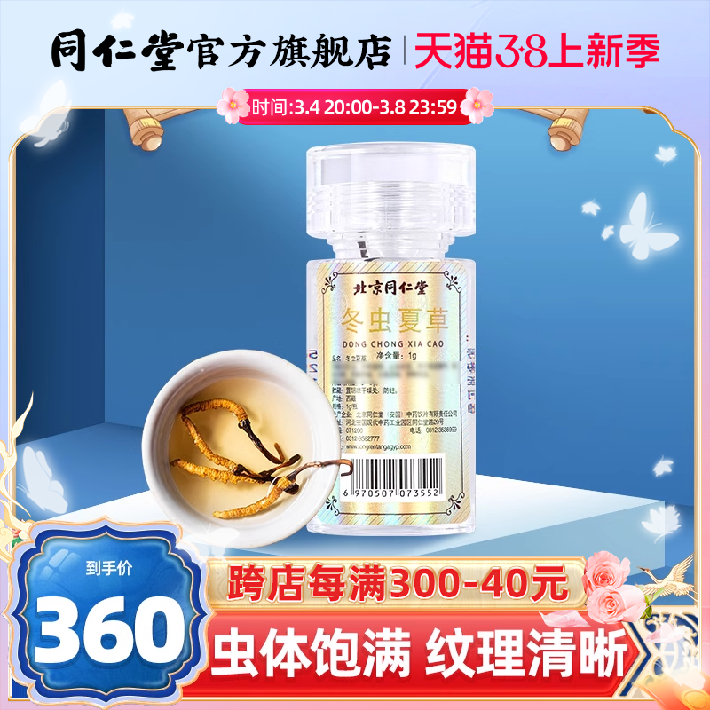 北京同仁堂冬虫夏草1g精选特产新鲜可泡酒西藏虫草干货正品