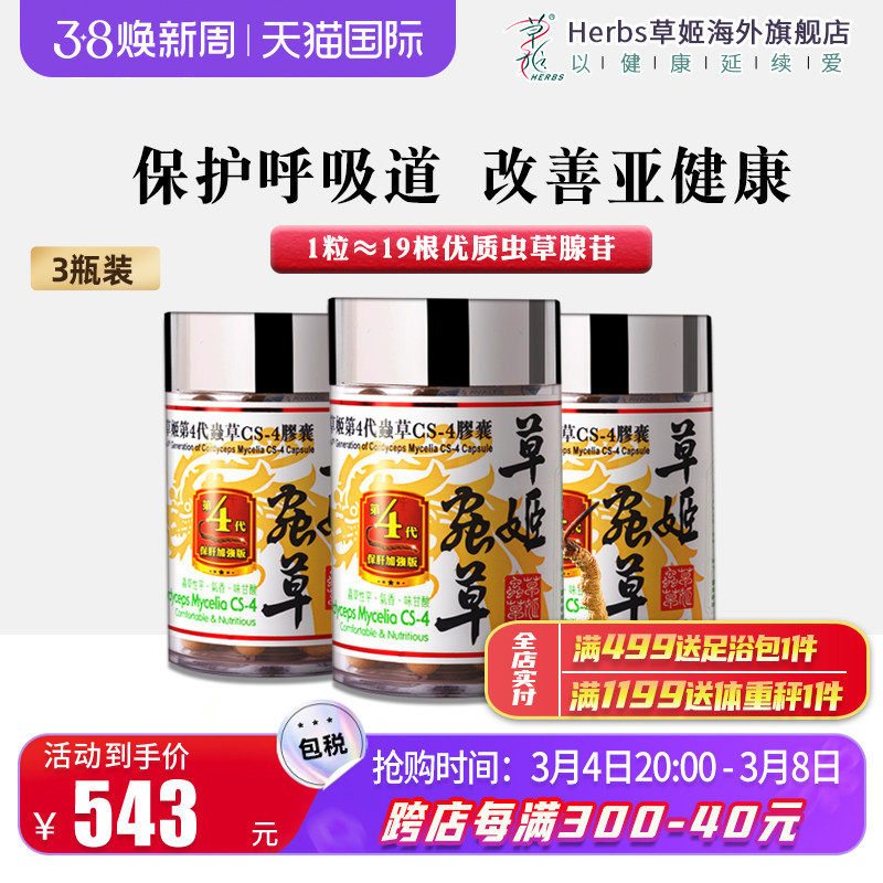 herbs草姬冬虫夏草胶囊维护心肺呼吸健康营养品第四代虫草3盒装