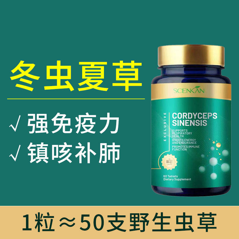 美国scenkan冬虫夏草精华片虫草菌丝体非胶囊强免疫力咳补肺肾