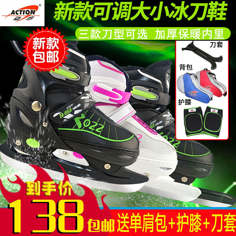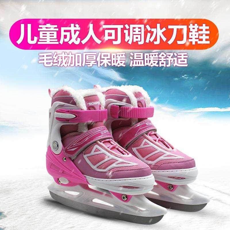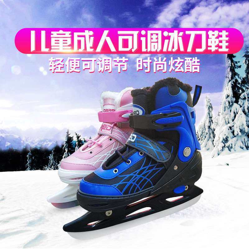 儿童可调冰刀鞋成人保暖冰球刀初学男女速滑刀真冰学生滑冰鞋热度
