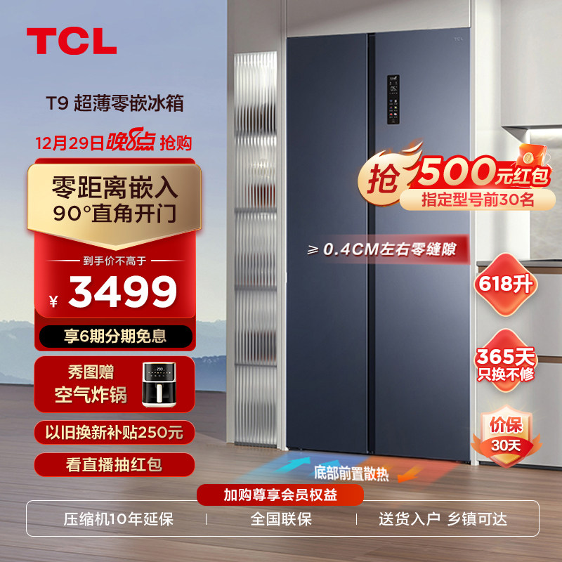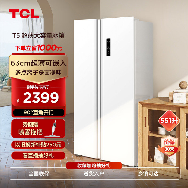 TCL R551T5-S对开双开门大容量风冷无霜变频双门嵌入式家用电冰箱