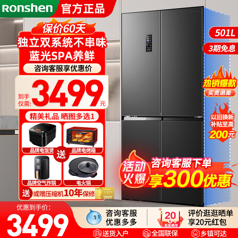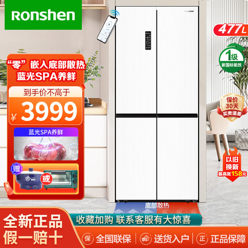 容声501L十字对开四门一级双系统变频风冷无霜白色超薄嵌入式冰箱