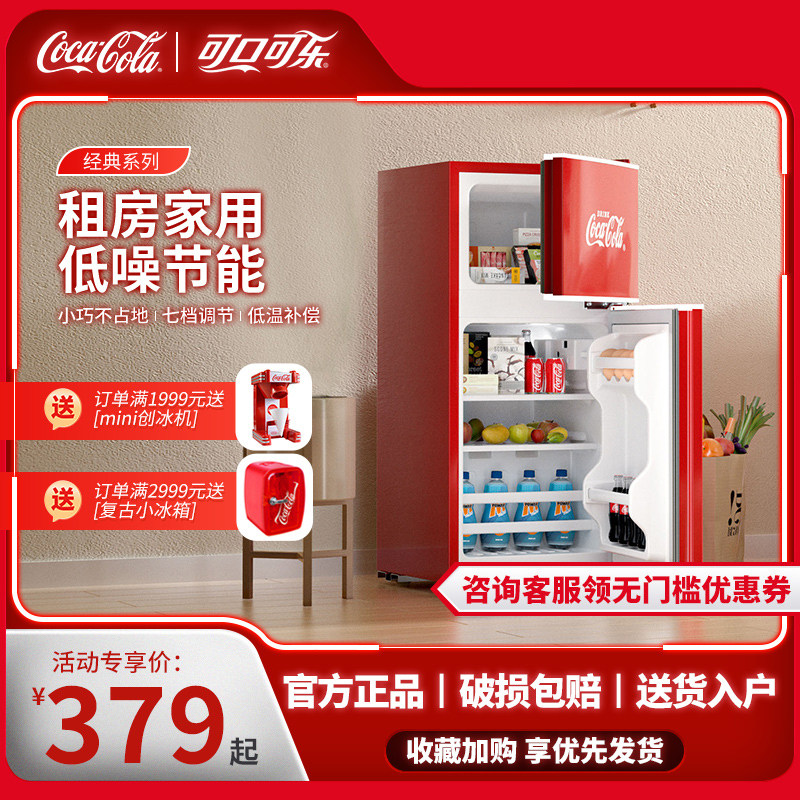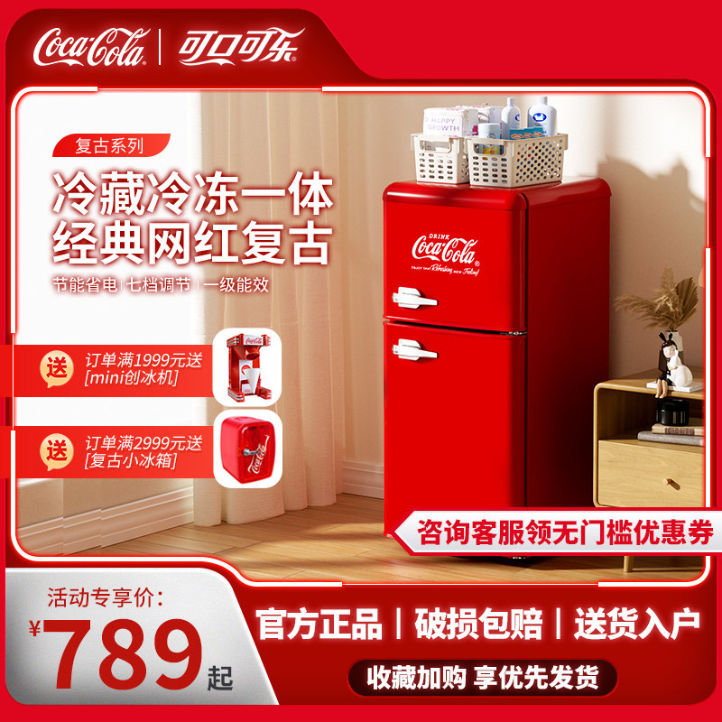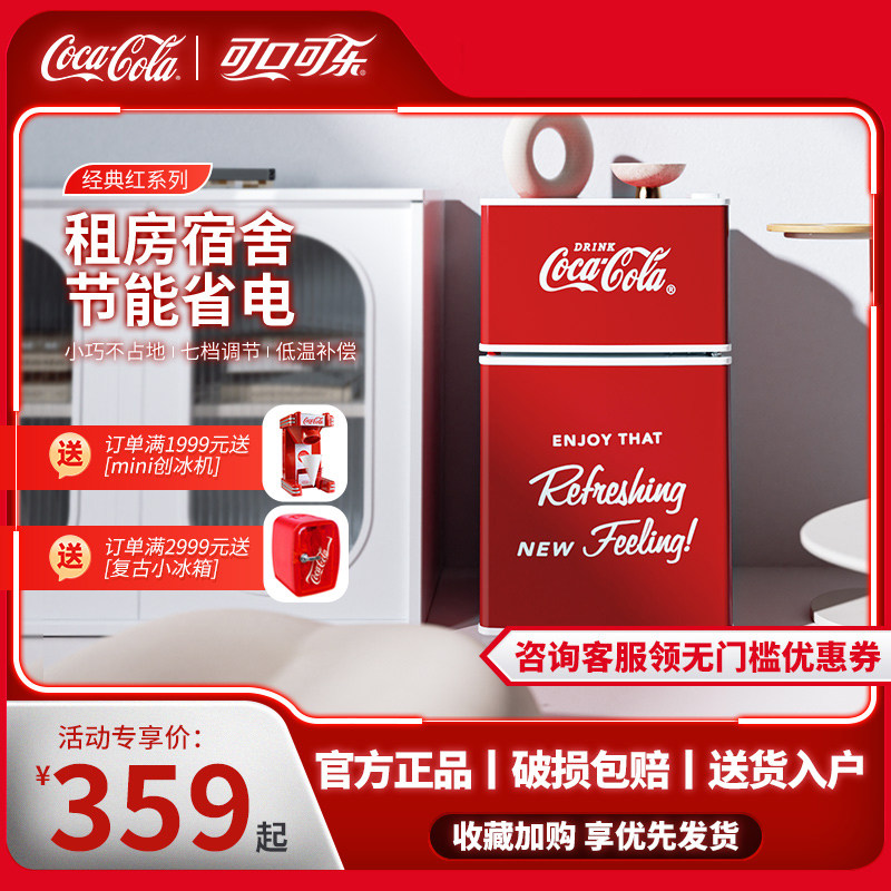 可口可乐复古小冰箱小型家用迷你小冰箱双门冷藏冷冻宿舍低噪节能
