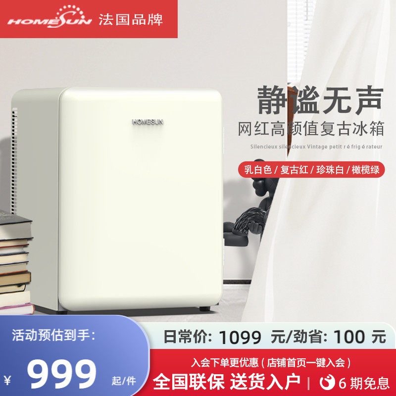 法国HOMESUN单门家用办公室宿舍小型冷藏冷冻高颜值网红复古冰箱