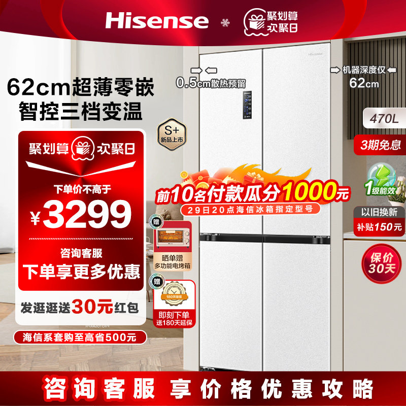 海信470升白色十字对开四开门超薄零嵌变温家用除菌大容量冰箱206