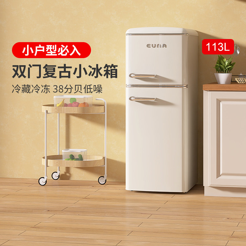 优诺BCD-113R复古小冰箱双门小型冰箱冷藏冷冻家用迷你宿舍小户型