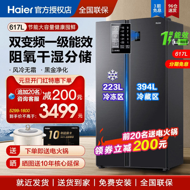 海尔电冰箱617L大容量双开门对开无霜家用一级能效变频官方旗舰店