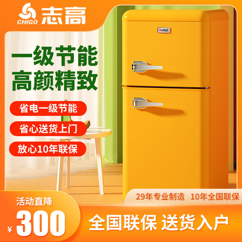 【高颜值】志高网红复古冰箱小型双开门冷藏冷冻宿舍吉美式小冰箱