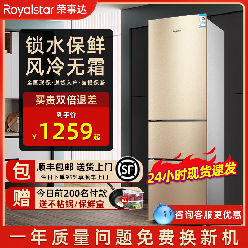 荣事达215/200L冰箱风冷无霜三门中型家用节能双门小冰箱租房宿舍