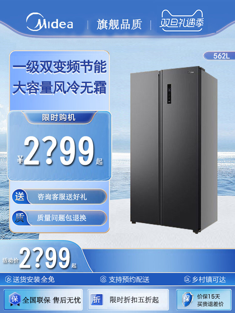 美菱官方630升对开双开门大容量一级节能变频风冷无霜家用电冰箱