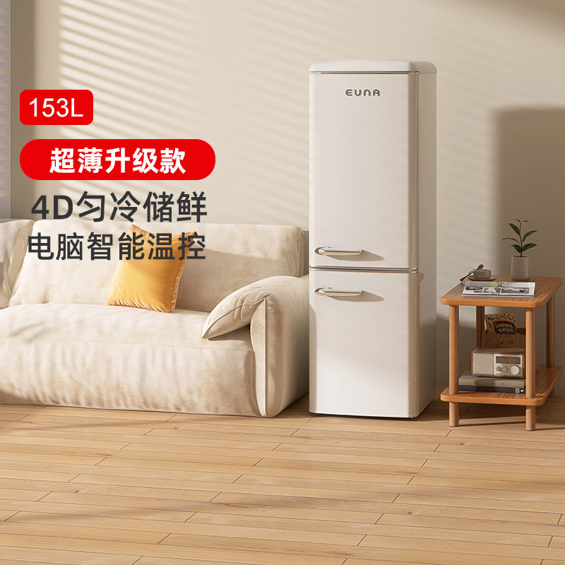 优诺BCD-153SR 复古冰箱双门小型家用小户型超薄冰箱网红白绿黄色
