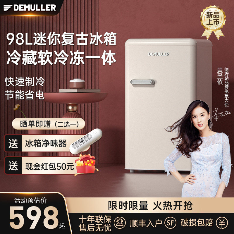 德姆勒单门复古冰箱小型迷你宿舍高颜值家用节能省电冷藏冷冻冰箱