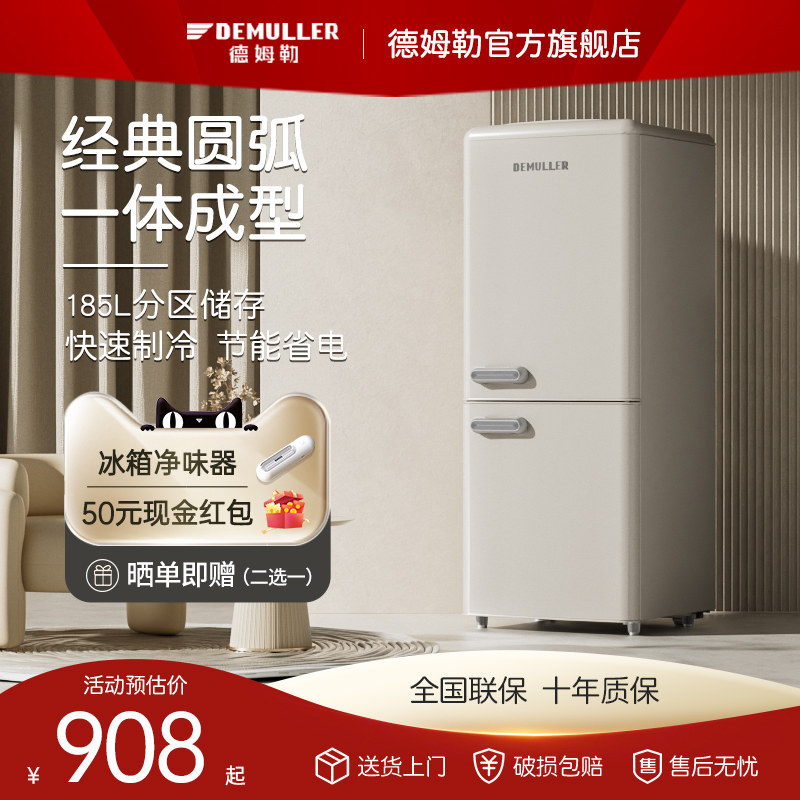 德姆勒复古冰箱大容量网红高颜值小型家用双开门冷藏冷冻静音节能
