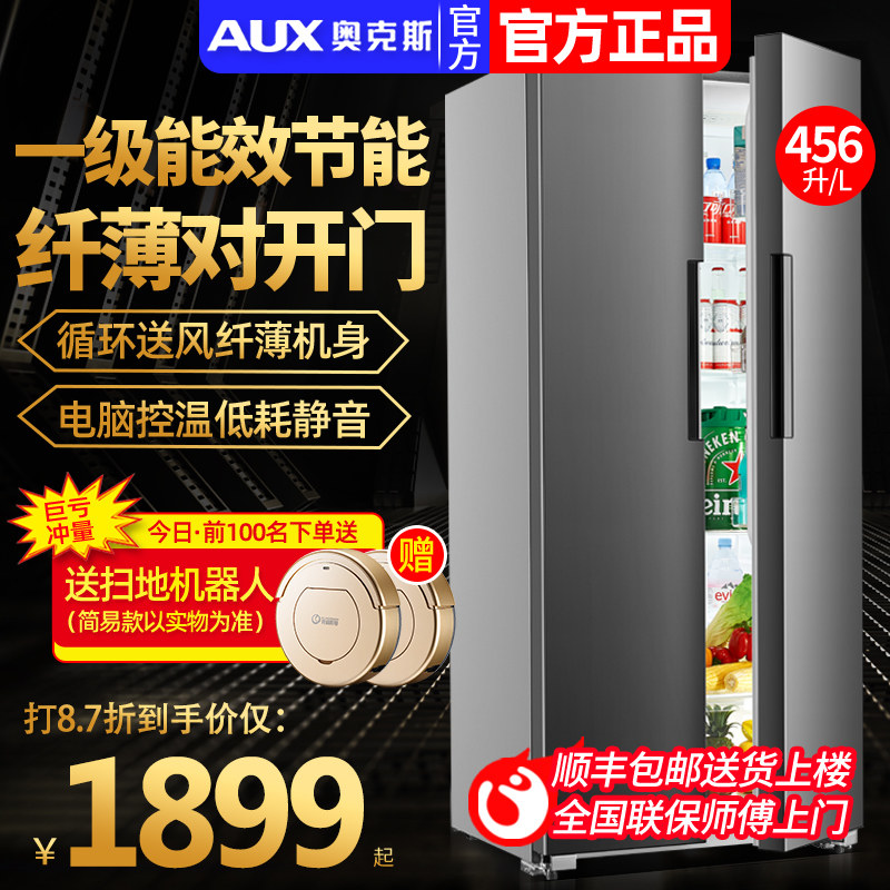 【一级节能】奥克斯冰箱408L/456L风冷无霜十字对开门超薄双开门