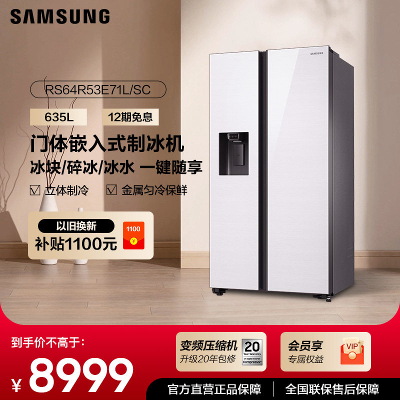 美的607L对开双开门大容量官方风冷无霜变频超薄嵌入式家用电冰箱