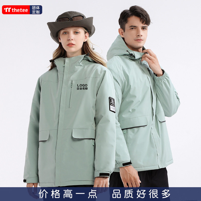 秋冬情侣冲锋衣定制印字一体羽绒棉内胆保暖防风防水防污外套户外