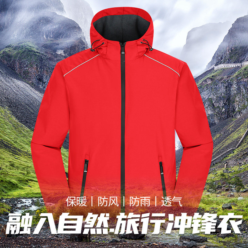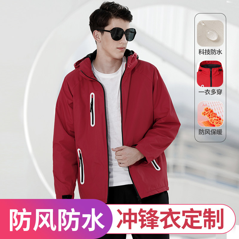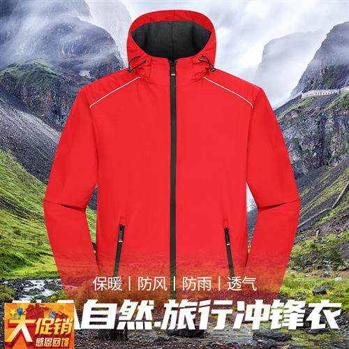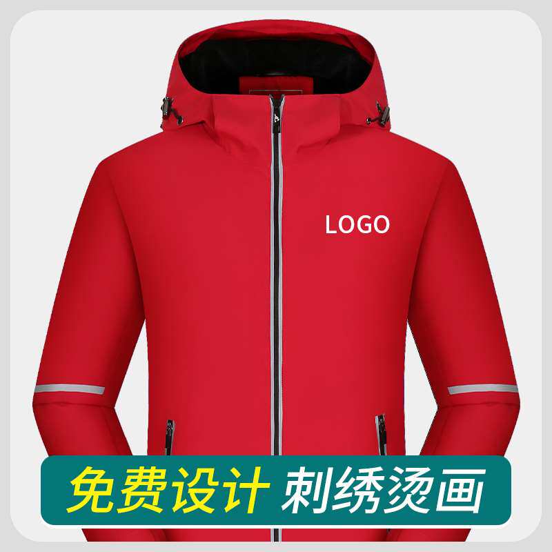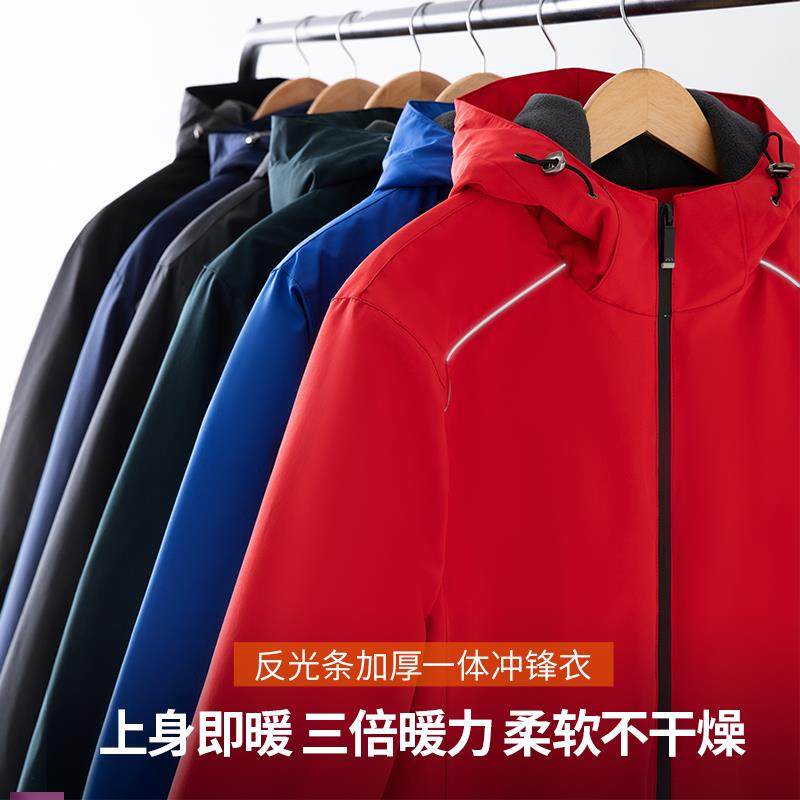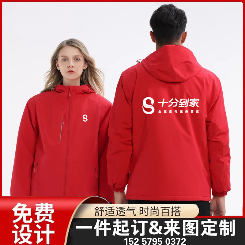 十分到家冲锋衣定制加绒长袖外套工作服订做防风薄工装印字保暖红