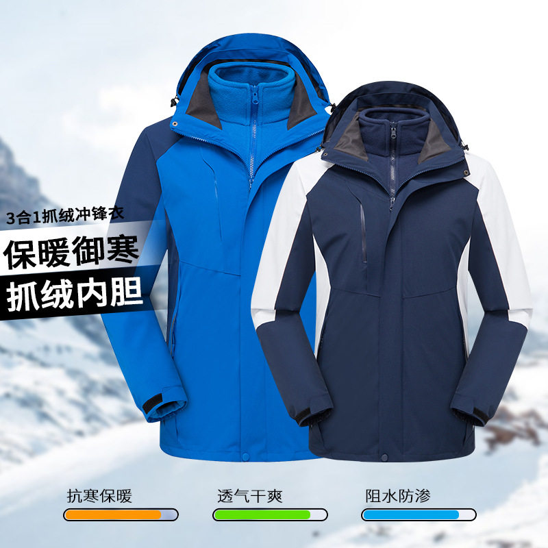 户外冲锋衣两件套男女款可加厚可脱卸抓绒衣印字logo防风工作服装