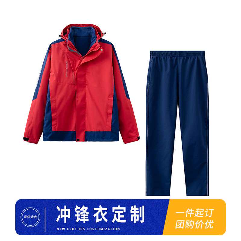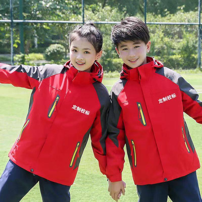 户外冲锋衣班服儿童三合一冬季保暖中小学生高中校服园服定制校徽