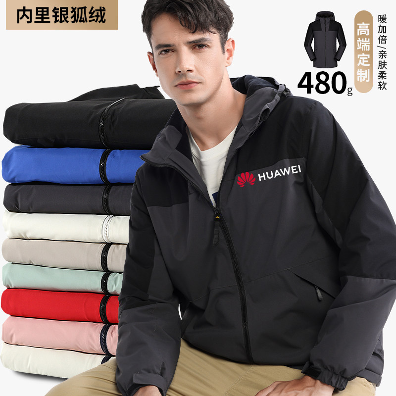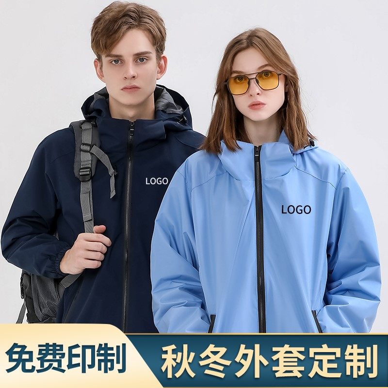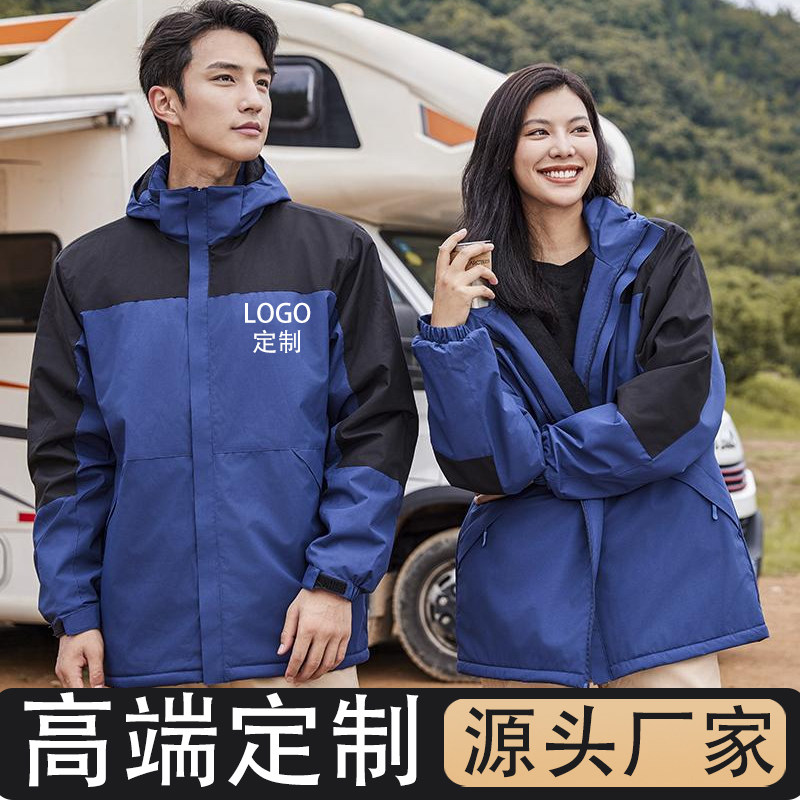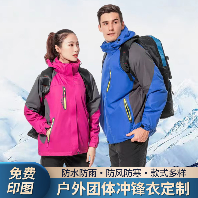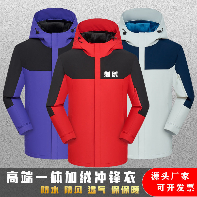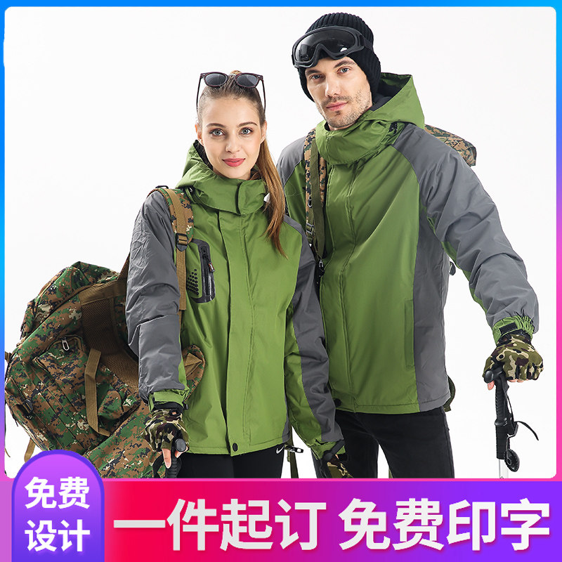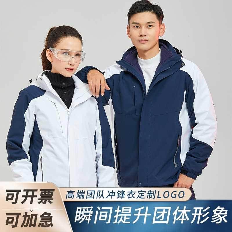 冲锋衣定制印logo外套男女加厚三合一加绒可拆防风防水秋冬印字绣