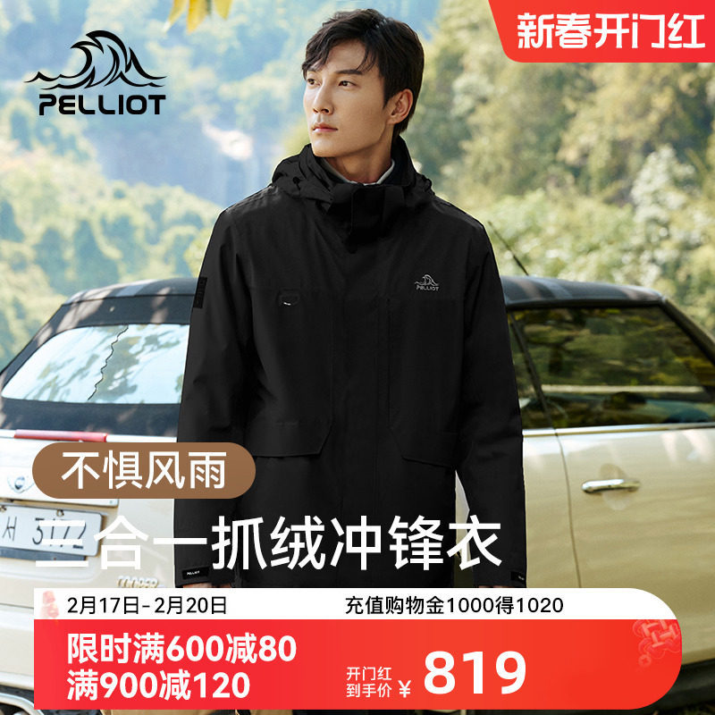 伯希和抓绒冲锋衣男三合一防风防水户外可拆卸登山服秋冬加厚外套